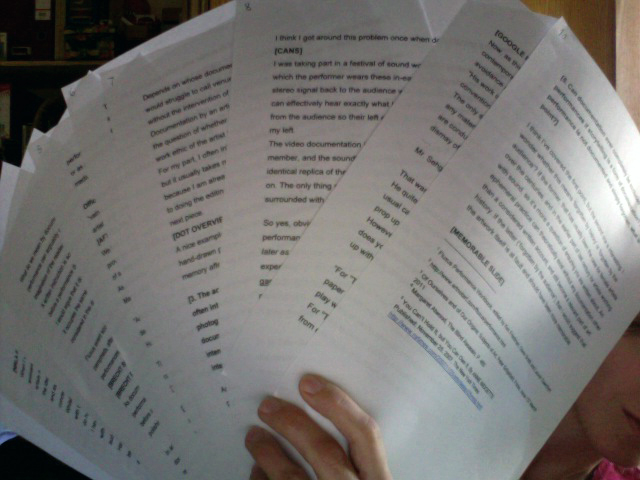 I was invited to present on the topic of live art documentation, as both curator of AfterLive and as an artist. The other panellists were Richard Dedomenici, Lois Keidan, Tom Pope and Anthony Roberts. I wrote 10 pages of notes: